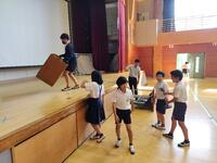 6年生が集会の準備を粛々(しゅくしゅく)と行っていました。
