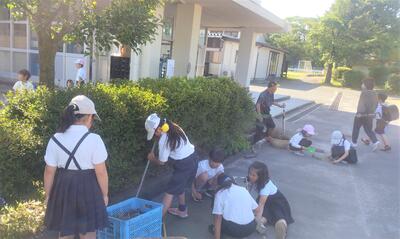 さらに、見ていた3年生と2年生も加わって掃き始めました。