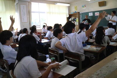 手を挙げて、発表しようとしている6年生の子どもたちが多数見受けられます。