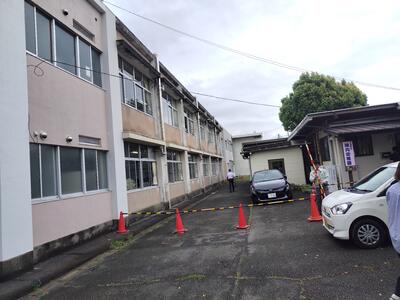 雨が降り出し校舎もずぶ濡れになっていましたが、教頭先生が校舎内を点検し、安全が確認されました。
