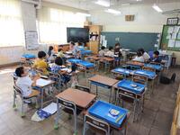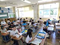 1年生には、学校の夏の課題が終わり、市販の国語・算数のドリルを持参し、黙々と取り組んでいる強者(つわもの)もいました。