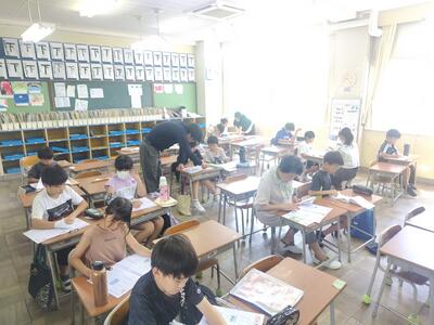 パワフル4年生が、し~とした空気の中、パワフルに学習を進めていました。