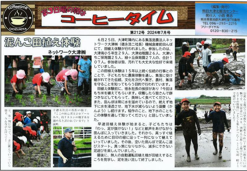 熊日大津北販売センターが発行される7月21日(日)の「第3日曜日の朝はコーヒータイム」に南小5年生が掲載されました。