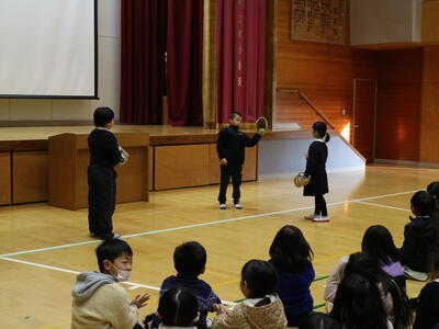 抽選で当たった2年生、3年生、5年生が、大谷選手からもらったグローブを使って、キャッチボールをしました。