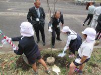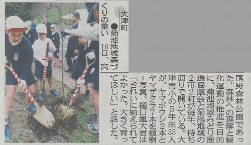 本日、5年生が「平成30年度菊池地域森づくりの集い」(育樹祭)に参加しました。高尾野森林公園の式および植樹を行い、学校に戻り木工教室(本立て作り)を行いました。