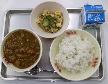 復活第一日目のメニューは、『ポークカレーライス、冬野菜のサラダ、牛乳』でした。