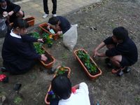 先日頂いた、プランターに花の苗を植えました。環境美化委員さんが頑張ってくれました。しっかり根付き、きれいな花を咲かせてくれることでしょう。花いっぱいの学校へ着々と進んでいます。