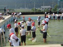 自分たちが使うプールを自分たちの手できれいにした子どもたち。今年は、一段と泳力が高まることでしょう。