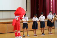 マスコットキャラクターの「ロアッソくん」と「ぷれすけくん」から受け取りました。