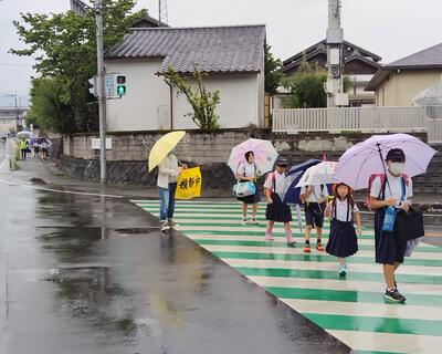 大きな声であいさつをしてくれる大津中学校の生徒たち、小学生のよきロールモデルとなってくれています。