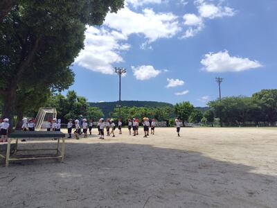 運動場に出ると、抜けるような青空に、夏っぽい雲がたなびいていました。