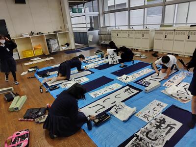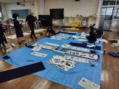 できあがった作品は、学習発表会で体育館で展示する予定です。