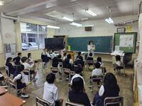学校協働活動推進員さん、司書の先生の案内で、各教室へ