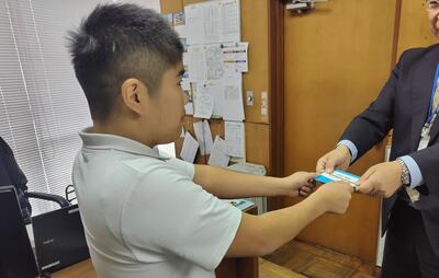 6年生が、休み時間に読書ページ通帳発行のため来室しました。