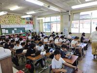 面白いのは、子供たちのタブレット学習が電子黒板に映し出されているところです。
