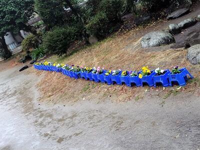 花壇や鉢にもパンジーが植わり、冬を迎える準備ができてきています。