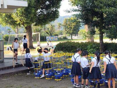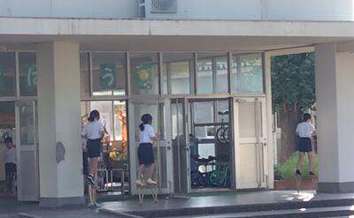 台風での臨時休校で、夏休みの延長のような週末が続いてしまい、昨日までは、あいさつの声が小さかったり、目に涙を浮かべる子どももいましたが、今日は一転!