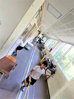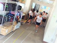 何と!登校した5・6年生が、各教室・廊下の道具を、台風前の状態に戻し始めました。