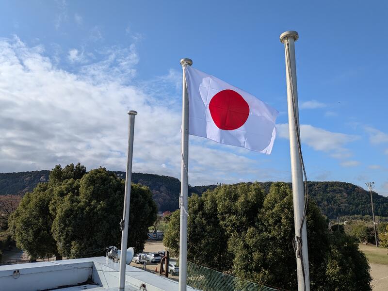 卒業式の朝、半年間がんばってきた国旗に