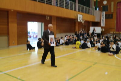 教育長、法務局阿蘇大津支局長をはじめ、人権推進関係の方々にご来校いただき、
