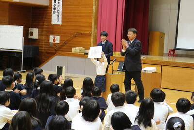 最後に子どもたちの大津町絵画展、読書感想、JA共済交通安全ポスターの表彰を行いました。