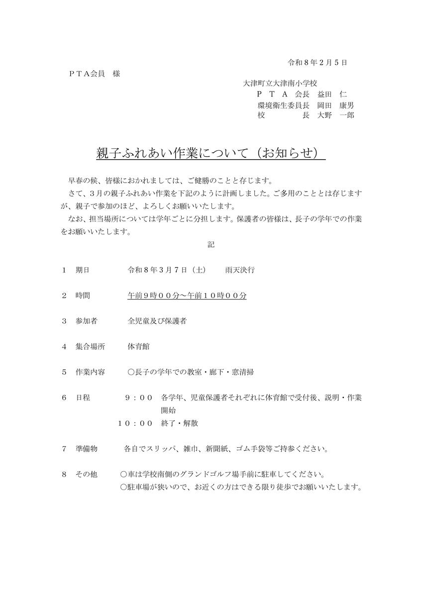 親子ふれあい作業について(お知らせ)