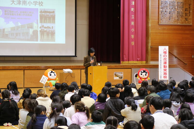 教育長、法務局阿蘇大津支局長をはじめ、人権推進関係の方々にご来校いただき、