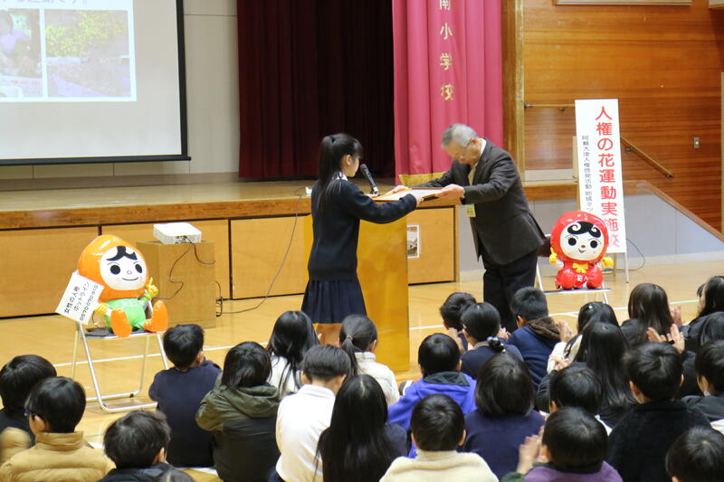 南小の「人権の花運動」に対して、