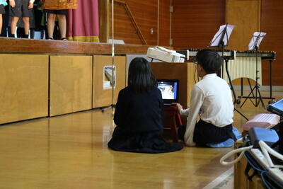 学習発表会の後半が始まる前に音楽クラブさん達が、
