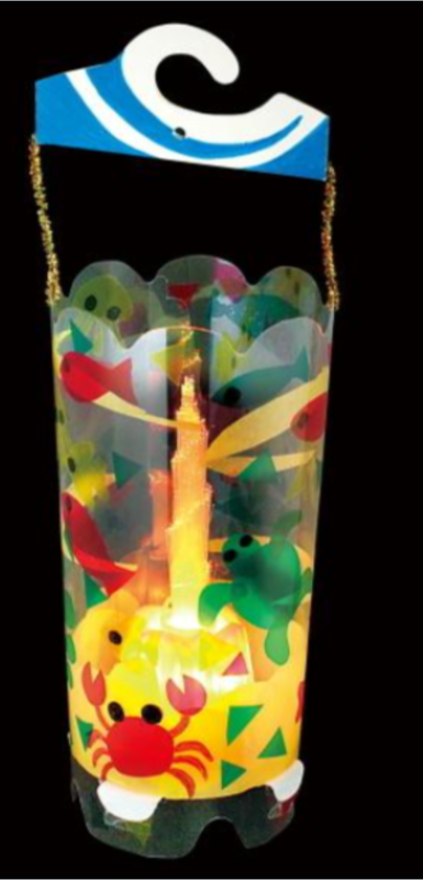 材料は、セロファンや針金、LEDライト、厚紙などを使いました。