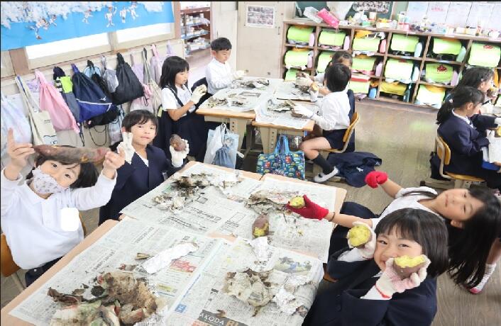 11月19日(水)に、生活科「あきとなかよし」の学習でいもほりをしました。5月にみんなで植えた芋づるの下に、どのくらい芋ができているのか、みんなわくわくしながら芋掘りをしました。お家の方に夏の作業でつる返しを手伝っていただいたおかげで、大きな芋がたくさん獲れました。「大きい!」「おもーい!」と子どもたちも大喜びでした。