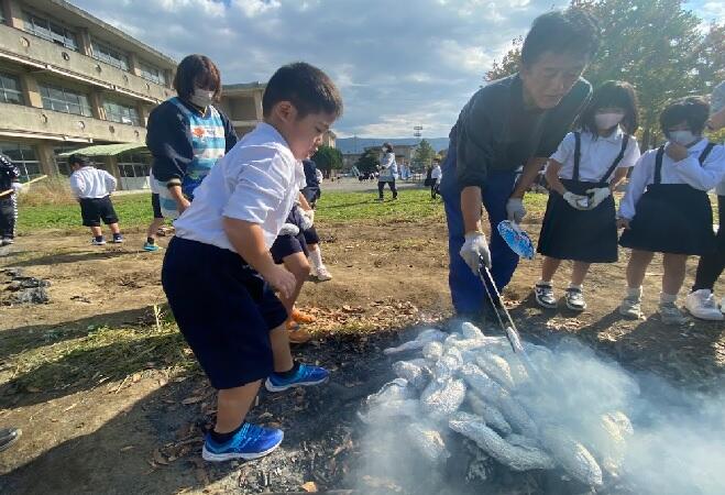 27日(木)には、愛育会の方々にご協力いただき、焼き芋パーティをすることができました。愛育会の方々に、寒い中にも関わらず火を起こしていただき、芋を焼いていただきました。最後は雨が降ってきた中で、教室まで焼けたお芋を届けていただきました。本当にありがとうございました。