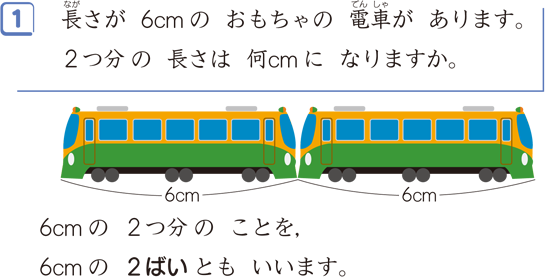 ここでも、「6cmの2倍」という表現で、以下に記述がありませんが、「6×2」の指導を行います。