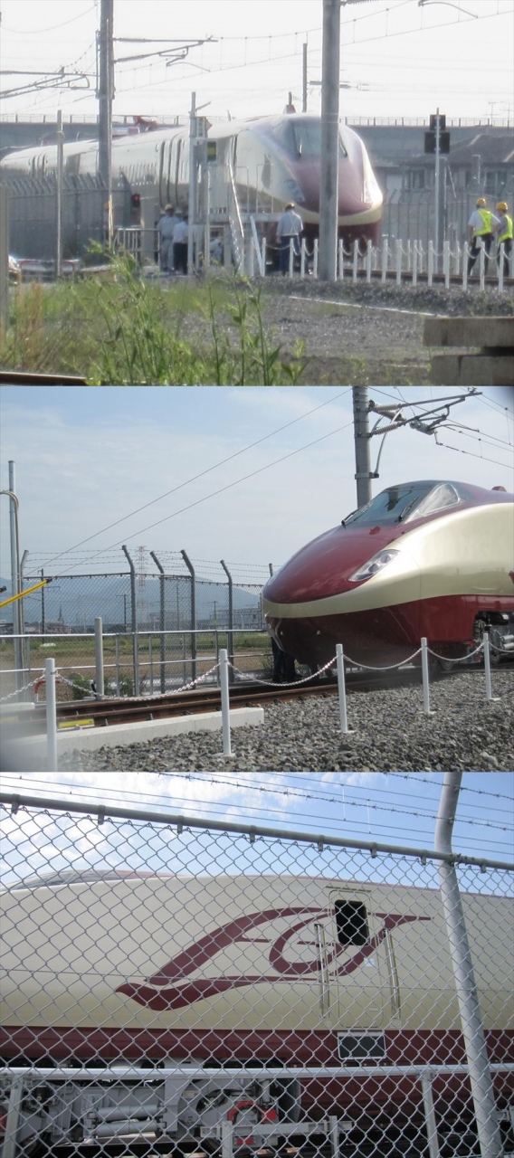 息子によれば、これは、フリーゲージトレインが新幹線として利用される場合に備えてテストをしているとのこと。こんな新幹線に将来のれるかもしれませんね。