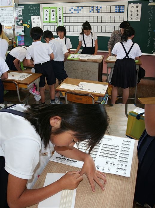 四年生は、昨日、目の不自由な方についての学習をしました。