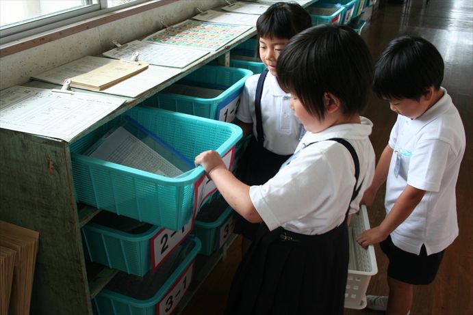 このおたよりを取りに来る係が、各クラスで決まっています。