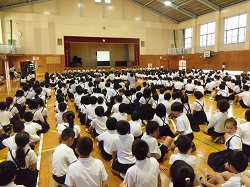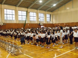 やつしろしりつおおたごうしょうがっこうです。 合(愛)言葉は、「にこにこ元気! 太田GO!!」