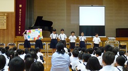 学級の目標発表では、各学級で話し合ってきたことを発表し合いました。