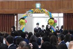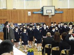 満開の桜が舞う中、中学校への希望に満ちた卒業生を今後も見守っていただければと思います。ありがとうございました。