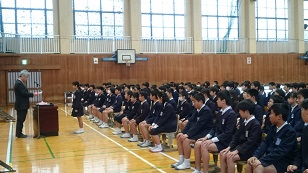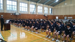 その後、校長先生から、サッカーの本田圭佑選手の言葉「今の頑張りは必ず未来の力になる。」のお話と、みんなが出会った事は奇跡なので、この出会いを大切にしてほしいと話がありました。