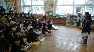 愛育会総会の後、6年生は本校で二中説明会がありました。
