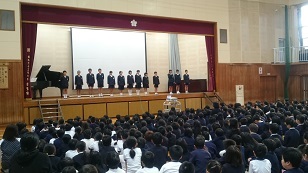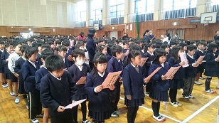 1年間各委員会の委員長として活躍してくれた6年生が、1年間の反省を発表しました。