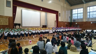 始めに、1年生が歓迎の言葉を発表しました。1年間の紹介の後、ダンスと校歌を紹介していました。