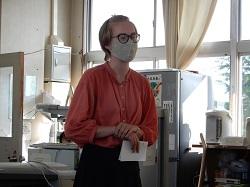 一人目は、事務室の宮永先生です。子どもたちとは直接関わる機会がほとんどありませんでしたが、授業で使うプリントや道具の準備をお手伝いしてくださるなど、子どもたちの学校生活を陰ながら支えていただいていました。
