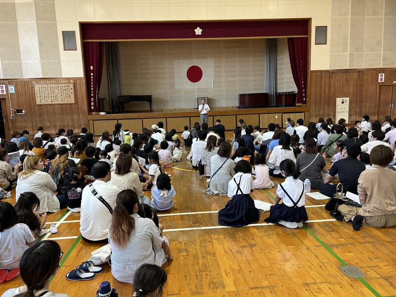 健診の待ち時間には、5年生のお世話係の児童が紙芝居や本を読み聞かせしながら、子供たちが退屈せず待てるよう工夫をする姿があり、上級生としてとても素敵でした。