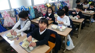 給食時の放送では、昨日は校長先生の話、今日は栄養教諭の話がありました。