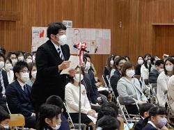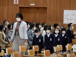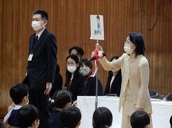 「5つ星あいさつをがんばってほしいこと」、「友だちをたくさん作って楽しい学校生活を送ってほしいこと」、「少しずつでいいから自分にできることに挑戦しがんばってほしいこと」、「車などに気をつけて安全に登校してほしいこと」など、学校生活を送る上で守ってほしいお約束について伝えていただきました。