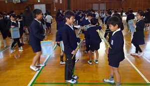 作文への返しを行っています。 名刺交換ゲーム