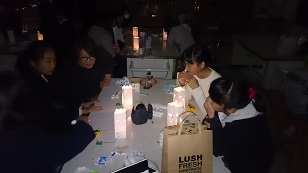 親子で協力しすてきな紙灯籠ができました。最後に部屋を暗くして、明かりをともすととても幻想的でした。