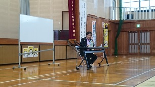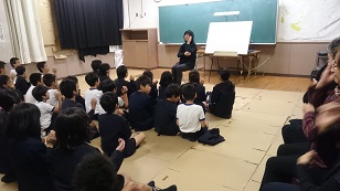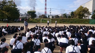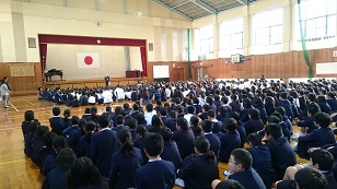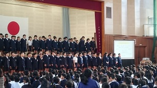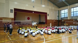 その後、校長先生から、今日起こった地震に関連して、地震の避難についてお話がありました。